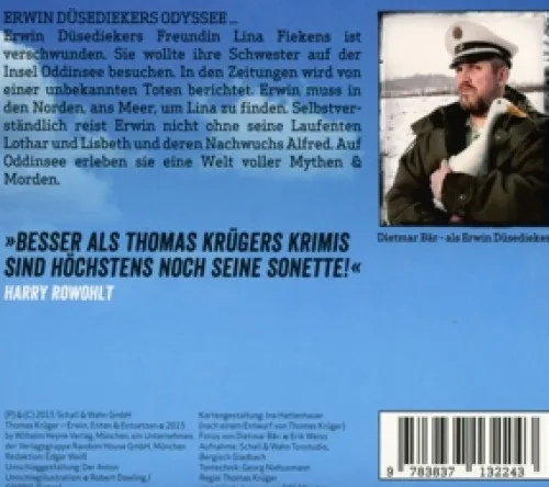 Erwin Düsedieker ist verzweifelt. Seine Freundin Lina ist verschwunden. Sie wollte ihre Schwester auf der Insel Oddinsee besuchen. Nach einigen Tagen bricht der Kontakt ab und die Zeitungen berichten von Morden. Erwin, der Bramschebeck nie verlassen hat, muss los und Lina finden. Ihn begleiten sein Freund, der Wacholdertrinker Arno Wimmelböcker, und die resolute Hilde Gerkensmeier. Selbstverständlich reist Erwin nicht ohne seine Laufenten Lothar & Lisbeth und deren eigenwilligen Nachwuchs Alfred.