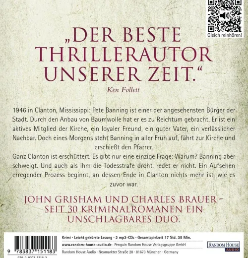1946 in Clanton, Mississippi: Pete Banning ist einer der angesehensten Bürger der Stadt. Der hochdekorierte Kriegsveteran hat es als Oberhaupt einer alt eingesessenen Familie mit dem Anbau von Baumwolle zu Reichtum gebracht. Er ist ein aktives Mitglied der Kirche, ein loyaler Freund, ein guter Vater, ein verlässlicher Nachbar. Doch eines Morgens fährt Banning zur Kirche und erschießt den Pfarrer. Die Gemeinde ist erschüttert, und es gibt nur eine einzige Frage: Warum? Banning aber schweigt. Ein Aufsehen erregender Prozess beginnt, an dessen Ende in Clanton nichts mehr ist, wie es zuvor war.