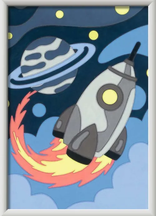 Dank der farbigen Motivlinien, können die Kinder das ganze Motiv Weltraumabenteuer und die Farben schneller erkennen.