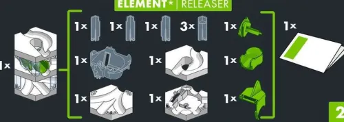 Mehr Action mit dem Element Releaser der GraviTrax PRO Linie. Der erste Stein, der drei Ebenen miteinander verbindet und sich Kugeln beeinflussen. Mit diesem Element werden Abhängigkeiten über drei Ebenen erschaffen. In der obersten Ebene können auf zwei Eingängen Kugeln in den Releaser hineinrollen. Sobald eine Kugel auf der untersten Ebene durch den Releaser rollt, wird eine Kugel auf der obersten Ebene frei und verlässt den Stein auf der mittleren Ebene. Damit kann der Releaser als Verzögerer und Kugelauslöser in die Bahn eingebaut werden. Ein Feuerwerk von Kugelexplosionen kann entstehen. Ein manuelles Laden ist nicht notwendig! Spieldauer beliebig. beinhaltet keine Elektronik. FSC Mix
