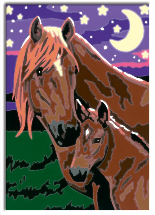 Dank der farbigen Motivlinien, können die Kinder das ganze Motiv Pferde und die Farben schneller erkennen.