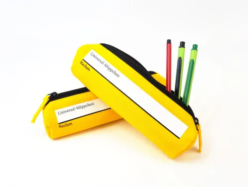 Das perfekte Accessoire für alle Literatur-Fans und Vielleser: Das Universal-Mäppchen ist optisch an die bekannte Reclam Universal-Bibliothek angelehnt – ein gelber Hingucker!