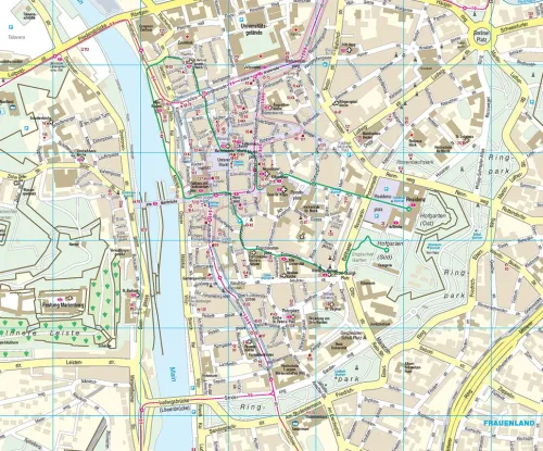 Dazu: kostenlose Web-App für Smartphone, Tablet und PC mit Stadtplan- und Satellitenansichten passend zum Text, Routenführung zu allen beschriebenen Sehenswürdigkeiten, Verlauf des Stadtspaziergangs, seitenbezogenen Updates nach Redaktionsschluss