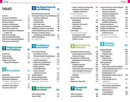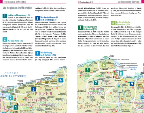 – Übersichtsseiten mit Beschreibungen aller interessanten Orte im Norden Polens: von der Hafenstadt Stettin über das geschichtsträchtige Trójmiasto und die einzigartige Insel Wolin bis zu den beeindruckenden Masurischen Seenlandschaften, der grünen Kaschubischen Schweiz und anderen Geheimtipps wie Ermland, Frischer Nehrung und der idyllischen Suwalki-Region
