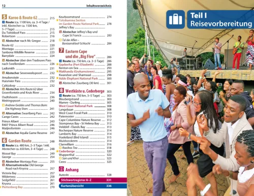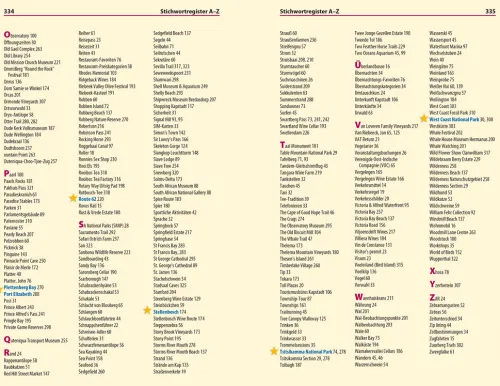 – Die schönsten Reiserouten: Kapstadt, Kirstenbosch und Constantia, Kap-Halbinsel, Weinland, Walküste, Karoo & Route 62, Garden Route, Eastern Cape, Westküste und Cederberge