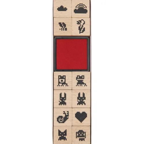 Rico Design GmbH & Co.KG Stempel & -Kissen-Stempelset Futschikato, Pixel, FSC 100%, 12 Stempel, 1 Stempelkissen