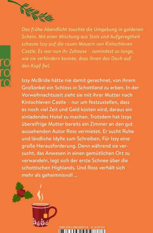 Izzy McBride hätte nie damit gerechnet, von ihrem Großonkel ein Schloss in Schottland zu erben. In der Vorweihnachtszeit zieht sie mit ihrer Mutter nach Kinlochleven Castle – nur um festzustellen, dass es noch viel Zeit und Geld kosten wird, daraus ein einladendes Hotel zu machen. Trotzdem hat Izzys übereifrige Mutter bereits ein Zimmer an den gut aussehenden Autor Ross vermietet. Er sucht Ruhe und ländliche Idylle zum Schreiben. Für Izzy eine große Herausforderung. Denn während sie versucht, das Anwesen in einen gemütlichen Ort zu verwandeln, legt sich der erste Schnee über die schottischen Highlands. Und Ross verhält sich mehr als geheimnisvoll . . .