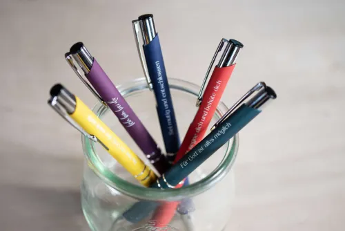 Die schönen Kugelschreiber mit aufgedruckter Botschaft sind der perfekte Begleiter für jeden Tag. In dem ungewöhnlichen runden Etui ist der Stift ein ideales Geschenk zum Geburtstag oder zu Weihnachten oder einfach nur so für alle Schreibbegeisterten.