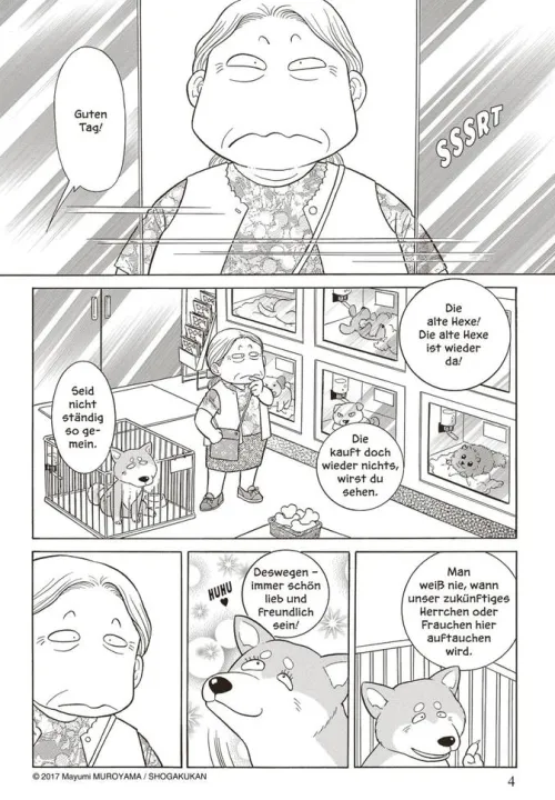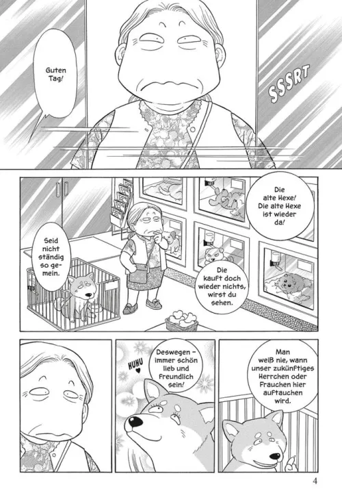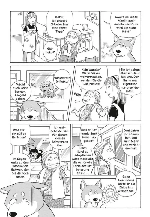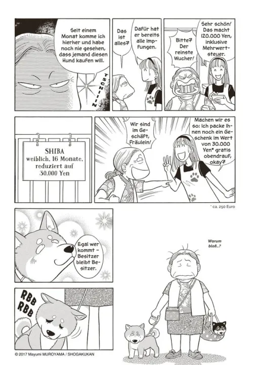 Ein Hund muss her! Denn ganz allein mag die „alte Hexe“ Hinako auch nicht weiter sein. Ein süßer Shiba Inu soll es werden. Und die resolute Dame wird fündig in der Tierhandlung: Ihre Wahl fällt auf den niedlichen Taro. Doch den kleinen Welpen gibt es nicht ohne Shibako. Diese – äußerlich nicht ganz perfekt geratene – Hündin muss als „Ladenhüterin“ endlich an den Menschen gebracht werden. Zunächst
