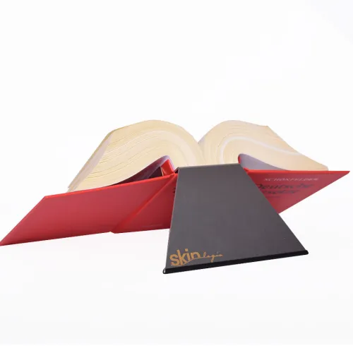 Wer Jura studiert, weiß, wie umständlich es sein kann, mit den schweren und unhandlichen Gesetzestexten zu arbeiten. Die SKINLegis Buchstütze wird einfach mit dem geraden Ende zwischen den Papierblock und den Buchrücken des Loseblattwerks gesteckt, um einen optimalen Lesewinkel zu erzeugen. So wird Lesen und Lernen deutlich erleichtert. Für den Transport kann die Buchstütze einfach im Buch verstaut werden