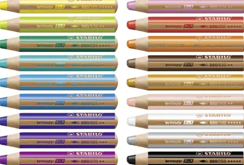 kleine Kinder sehr gut zu greifen. Wegen der hohen Deckkraft und der intensiven Farben eignet sich der woody 3 in 1 auch für dunkles Papier. Außerdem malt er auch auf glatten Oberflächen, wie z. B. Glas oder Metall und lässt sich von dort mit etwas Wasser wieder entfernen.