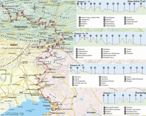 Von den Bergen bis ans Meer: Der Alpe-Adria-Trail macht es möglich. Auf rund 707 km führt der Weitwanderweg durch Kärnten, Slowenien und Friaul-Julisch Venetien. Beeindruckende Gebirgsformen und zahlreiche geschichtliche Zeugnisse lassen die Wanderung nie langweilig werden. Darüber hinaus begeistern die Gastfreundschaft der Einheimischen und die vielfältige Küche der verschiedenen Regionen. Der Wanderführer beschreibt den Weg vom Großglockner nach Muggia an der Adria in 37 Etappen. Zu jeder Tagesetappe finden Sie hilfreiche Angaben zu Übernachtungsmöglichkeiten und anderer Infrastruktur vor Ort. Bei der Orientierung helfen genaue Karten, Höhenprofile und kostenlose GPS-Tracks.