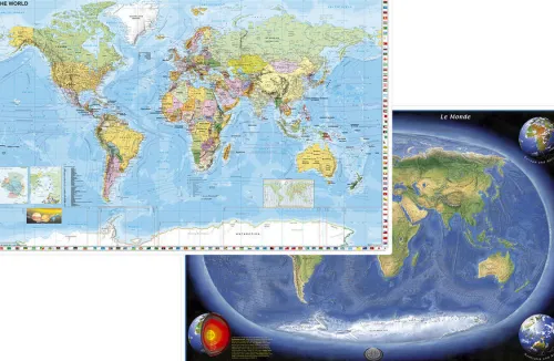 – politische Weltkarte mit Gebirgsrelief und sehr hohem Informationsgehalt