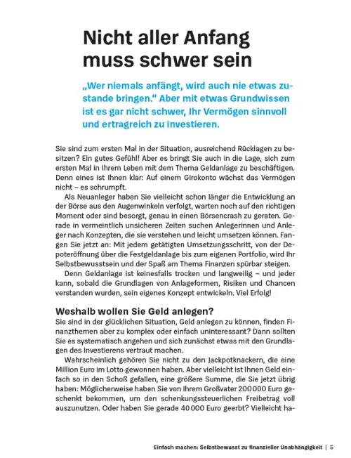 Das Standardwerk für alle, die erstmalig Geld anlegen wollen.