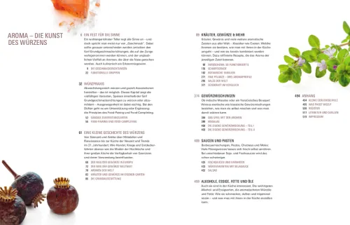 Geschmackstests, internationale Beispiele und sensorische Vergleiche erleichtern den Zugang zu komplexen Zusammenhängen. Ergänzend vermittelt das Werk Grundlagen zu Saucen, Pasten, Kräutern, Gewürzmischungen und deren Einsatz in klassischen und modernen Gerichten. Auch Prinzipien der Molekularküche werden leicht verständlich erklärt und helfen, Textur, Temperatur und Aroma gezielt zu steuern.