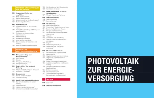 “ Photovoltaik & Batteriespeicher“ vermittelt alle notwendigen Kenntnisse über die heutige Technik, die aktuelle Förderung und die Wirtschaftlichkeit einer Anlage.