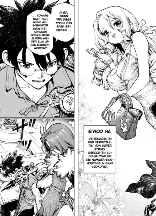 Ein übernatürlicher, hyperdimensionaler Fantasy-Sci-Fi-Action-Manga von Youn In-Wan (u. a. Shin Angyo Onshi) und Boichi (u. a. Dr. Stone, Wallman, Sun-Ken Rock)! Als ältester Sohn der Familie Polo gibt Marco alles, um für seine jüngeren Geschwister zu sorgen. Nach einem merkwürdigen Schiffsunglück findet er sich in Asien wieder, einem Ort, vor dem er gewarnt wurde. Bald wird ihm klar, dass er an der Schwelle zu einer unerwarteten Reise steht, an deren Ende er vor einer Frage steht, auf die es keine richtige Antwort gibt . . . Das erwartet dich in Band 3: Der Kampf Gut gegen Böse geht in die entscheidende Phase! Marco reist zusammen mit dem Super String- Team nach Paris, um endlich seine Geschwister zu retten. Allerdings werden sie von Baek bereits erwartet und ein erbitterter Kampf beginnt. Zum Glück erhält er (riesige) Unterstützung aus einer anderen Dimension! Als im Anschluss ein vertrautes Gesicht über New York auftaucht und der Kampf gegen Baek verloren scheint, müssen die Helden von Super String einen teuren Preis bezahlen . . .