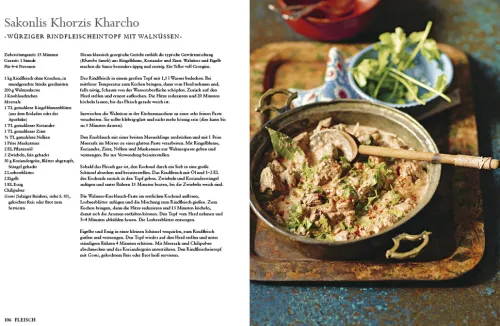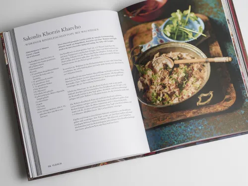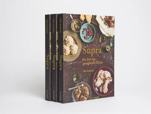 Tauchen Sie ein in das Land der Gastfreundschaft und werden Sie Zeuge georgischer Esskultur! Das Kochbuch rund um das georgische Festessen Supra bietet eine Vielzahl an schmackhaften und kreativen Rezepten – so vielseitig und eindrucksvoll wie Georgiens Landschaft. Supra ist ein georgisches Festessen, das bei jeder sich bietenden Gelegenheit in größeren wie kleineren Runden zelebriert wird. Ob Familie, Freunde, Nachbarn oder Bekannte – alle versammeln sich am Tisch und teilen ergreifende Trinksprüche, großartige Gespräche, besten Wein und natürlich Schüssel anSchüssel köstlichstes Essen miteinander. Aus einer Vielzahl an Speisen, die in die Mitte des Tischs gestellt werden, kann sich jeder nach Herzenslust bedienen. Mit Supra gewährt Tiko Tuskadze einen tiefen Einblick in ihre Erinnerungen, ihre Liebe zu ihrer Heimat sowie ihre Küche. Beispielrezepte:- Lavash (gefüllte dünne Fladenbrote)- Khachapuri (mit Käse überbackenes Hefebrot)- Khinkali (mit Fleisch oder Käse gefüllte Teigtaschen)- Mtsvadi (gegrillte Fleischspieße)- Lobio (Bohnengericht)- Perogi (gefüllte süße Teigtaschen)