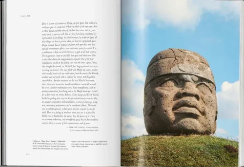 Wir versammeln uns zur Andacht, umkreisen das Lagerfeuer, verneigen uns vor dem Waldaltar und preisen im Tempel die von uns gewählten Gottheiten. Durch Pilgerreisen bahnen wir unauslöschliche Pfade, auf denen wir unseren meditativen Weg über Kontinente hinweg gehen, und immer neue Generationen von Füßen betreten diesen heiligen Boden. Durch unsere Hingabe an den Geist entwerfen wir neue Welten – wilde, phantasievolle Oden an das, was uns heilig ist: goldene, in den Fels gehauene Tempel, riesige, aus Sand und Erde geformte Spiralen, stille, in bewaldeten Hainen versteckte Heiligtümer. Wir bemalen Höhlenwände, markieren den Weg mit Felsmalereien, legen zur Ehrerbietung im Kerzenlicht am Schrein Rosen nieder.