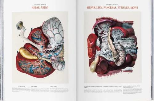 Die acht Bände von Bourgerys Werk decken die Bereiche beschreibende Anatomie, chirurgische Anatomie und Techniken (mit detaillierter Schilderung aller gängigen Operationen, die in der ersten Hälfte des 19. Jahrhunderts durchgeführt wurden), allgemeine Anatomie und Embryologie sowie mikroskopische Anatomie ab. Jacobs spektakuläre, handkolorierte Lithografien bestechen durch ihre Klarheit, Farbgebung und Brillanz. In ihnen spiegelt sich eine Kombination aus unmittelbaren Beobachtungen im Labor und Recherche auf dem Gebiet der medizinischen Illustration wider. Die einzigartigen Bilder bieten wissenschaftlich absolut exakte und künstlerisch perfekte Einblicke in die menschliche Anatomie und dürften nicht nur Leser aus medizinischen Berufen faszinieren, sondern auch Künstler, Studenten und all diejenigen, die sich für die Beschaffenheit unseres Körpers interessieren.