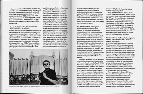 Im Oktober 2003, nur wenige Monate vor seinem Tod, überführte Newton große Teile seines Archivs in seine neue Stiftung, die im ehemaligen Landwehrkasino neben dem Bahnhof Zoologischer Garten untergebracht ist – jenem Bahnhof, von dem aus er im Winter 1938 Berlin überstürzt verließ. Mit dieser Publikation schließt sich ein Kreis in der Geschichte seines außergewöhnlichen Lebens und Werks.