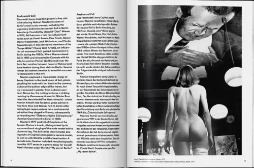Dieses Buch zeigt Newtons ikonische Berlin-Fotografien ebenso wie viele unbekannte Aufnahmen aus den 1930er bis 2000er Jahren: Nachtschwärmer in den angesagten Clubs und Restaurants der Stadt, Aktaufnahmen in den Alt-Berliner Pensionen seiner Jugend sowie die Berliner Filmszene mit Hanna Schygulla und Wim Wenders an der Berliner Mauer, John Malkovich und David Bowie.