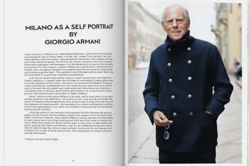 Milano dokumentiert fast zwanzig Jahre seiner Beschäftigung mit den unverwechselbaren Mailändern und ihrer geschäftigen, eleganten Stadt, zunächst als Besucher, dann als Einwohner. Mit einem Vorwort des verstorbenen Giorgio Armani und einem ausführlichen Interview, das Schumans einzigartige Herangehensweise beleuchtet, Mode im Alltag zu fotografieren, eröffnet das Buch einen faszinierenden Blick auf seine kreative Vision. Die Fotos wirken so sorgfältig komponiert, dass man kaum vermuten würde, dass sie unterwegs, auf der Straße aufgenommen wurden. Es scheint, als würde Schuman Mailand anhalten, und zwar nicht nur die Shopper, Skater und Raucher, die Zeit haben, sondern auch diejenigen, die keine Zeit haben: Miuccia Prada, Emiliano Salci, Luciano Barbera, die Sozzani-Schwestern – alle sind hier in denselben Straßen und Cafés zu sehen. Das Ergebnis ist eine Straßenansicht der Mailänder Modegeschichte, aufgenommen von einem Amerikaner mit offenem Blick für die Eleganz, die von den daran gewöhnten Einheimischen nicht mehr beachtet und in inszenierten Modeshootings nicht eingefangen wird – die Schönheit authentischer, unvorhersehbarer Stile, die nur von denen getragen werden, die keinem Konformitätsdruck unterliegen. Während Milano auf Fahrrädern, Vespas und Straßenbahnen vorbeirauscht, posieren Jung und Alt inmitten einer Pracht aus Marmor, Fresken, Skulpturen, Türmen, Säulen, verzierten Palazzi und brutalistischen Fassaden, lokalen Märkten, Blumenläden, vertikalen Gärten, kultigen Treffpunkten wie Bar Basso und Marchesi 1824, mit Espressos, Handtaschen, High Heels und Anzügen in allen erdenklichen Farben. Von den Kanälen des Naviglio Grande über das Kopfsteinpflaster der Via Brera bis hin zur Glasdecke der „Galleria Vittorio Emanuele II“ und dem Milano Centrale spiegeln die unterschiedlichen Architekturstile der Stadt die Vielfalt ihrer Einwohner wider.