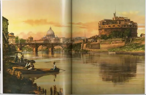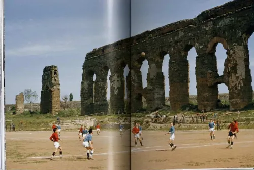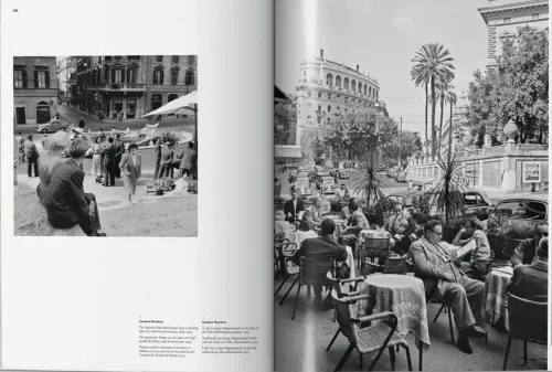 Aus dem Fundus traditionsreicher Bildarchive schöpfend, gewähren einige der hier abgedruckten historischen Aufnahmen einen einmaligen Blick in die Zeit der Grand Tour, zu deren bevorzugten Zielen und Motiven das Kolosseum, das Forum Romanum oder die Spanische Treppe gehörten (damals noch fast menschenleer). Aufnahmen aus späterer Zeit belegen die Vielgesichtigkeit Roms, von den Luxusvierteln der Reichen und den Orten des mondänen Zeitvertreibs bis zu den Straßenständen und Wäscheleinen in den Arbeitervierteln Trastevere und Testaccio. Dokumentarisches Material vermittelt einen Eindruck von der Unerbittlichkeit, mit der Mussolini und der Faschismus der italienischen Hauptstadt ihre Ideologie von Stärke, Körperkult und Nation aufprägten. Die aufkommende Farbfotografie zeigt, wie sich das Bild der Stadt vom Neorealismus der Nachkriegszeit zur Prosperität der Wirtschaftswunderjahre wandelte: elegante Mode, Berühmtheiten aus aller Welt, die Cafés der Via Veneto, deren Faszination Federico Fellini unsterblich gemacht hat. Größen aus Musik und Film, Literatur und Mode geben sich ein Stelldichein: Louis Armstrong, Elizabeth Taylor, Audrey Hepburn, Marcello Mastroianni, Sophia Loren, Pier Paolo Pasolini, Anna Magnani, Valentino.