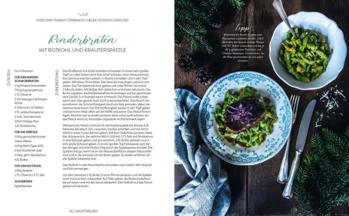 Leckere weihnachtliche Menüs. Ein Fest für die Sinne. Über 50 kreative, raffinierte und überraschende Rezepte für Advent, Weihnachten und Neujahr. Mit abgestimmten Menüvorschlägen, perfekter Getränkebegleitung, Tipps zur cleveren Vorbereitung sowie zum Austauschen und kombinieren einzelner Gänge. Für jeden ist etwas dabei, Weihnachtsgans im Asia-Style, Gefüllter Kürbis mit Quinoa, Nüssen und Mandelcreme, Grüner Salat mit Walnüssen, Beeren, Feta und Cranberry-Dressing, Pfirsich-Parfait mit Chrunchy Granola, Popcorn und Beeren.