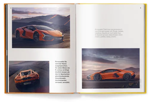 Ganz im Stile des avantgardistischen Automagazins ist auch „The Lamborghini Book“ mit spektakulären Fotografien der italienischen Kraftmaschinen und hochinteressanten Hintergrundinformationen gespickt. Die Marke Lamborghini erfährt hier eine ganzheitliche Würdigung ihres immensen Einflusses auf die automobile Geschichte und die moderne Pop-Kultur.