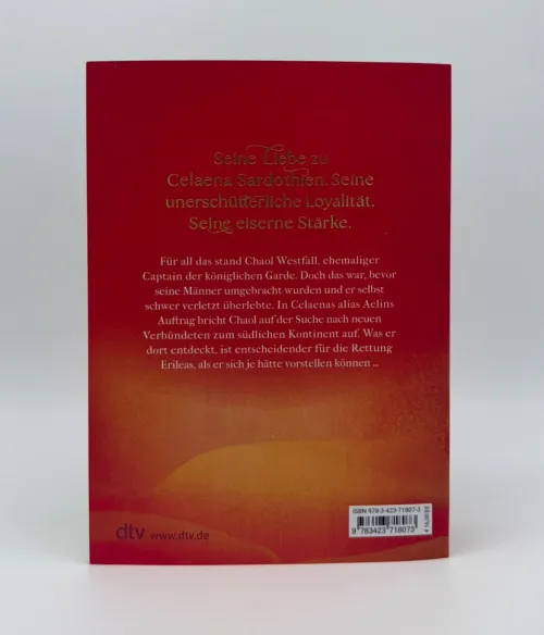 Selbstlos, mutig und verliebt in Celaena – all das war Chaol Westfall, Anführer der königlichen Leibgarde. Doch diese Zeiten sind vorbei. Das gläserne Schloss liegt in Schutt und Asche, Celaena ist nun Aelin Ashryver, rechtmäßige Königin von Terrasen, und Chaol selbst so schwer verletzt, dass er für immer gezeichnet sein wird. Seine einzige Chance auf Heilung liegt in Antica, der mächtigen Hauptstadt des südlichen Kontinents und Sitz der berühmten Schule für Heilerinnen. Während Aelin sich gegen den drohenden Krieg mit dem dunklen König wappnet, bricht Chaol nach Antica auf. Doch was er dort entdeckt, wird ihn nicht nur für immer verändern, es kann auch die Rettung für ganz Erilea bedeuten.
