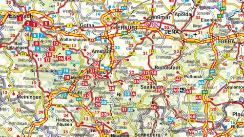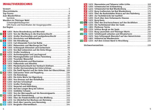 Ganz im Osten des Thüringer Waldes locken die Plothener Teichlandschaft und das »Thüringer Meer« mit den riesigen Stauseen der Saale. Im äußersten Westen des Wandergebiets erhebt sich aus altem Eichenwald die mittelalterliche Festung der Wartburg, einst Luthers Zuflucht, heute UNESCO-Weltkulturerbe. Dazwischen erstreckt sich zu beiden Seiten des berühmten Fernwanderwegs Rennsteig das markante Mittelgebirge des Thüringer Waldes. Der Thüringer Wald hat viel Natur zu bieten: fast 1000 Meter hohe Berge, alpin anmutende Täler und enge Schluchten, blühende Bergwiesen und ausgedehnte Wälder fernab großer Städte. Darüber erheben sich beeindruckende Felsformationen mit herrlichem Panorama.