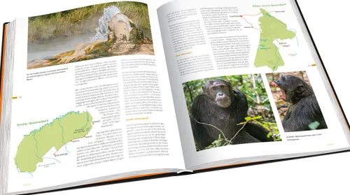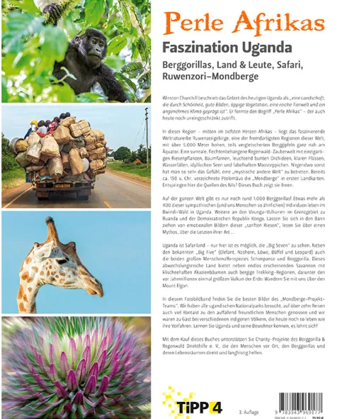 Es gibt kaum ein abwechslungsreicheres Land in Afrika – ganz Uganda in 6 Kapiteln. Jedes Kapitel enthält Übersichts- und Detail-Karten. Der Bildband enthält eine Sonder-Fotostrecke Black & White auf Naturpapier mit faszinierenden Gorilla-Portraits, Daten. Zahlen, Fakten und neuste Forschungsergebnisse über Berggorillas. Reise-Tipps und Wissenswertes über das Mondberge-Projekt.