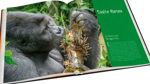 Auf der ganzen Welt gibt es nur noch rund 1. 000 Berggorillas! Etwas mehr als 400 dieser sympathischen (und uns Menschen so ähnlichen) Individuen leben im Bwindi-Wald in Uganda. Weitere an den Virunga-Vulkanen im Grenzgebiet zu Ruanda und der Demokratischen Republik Kongo. Lassen Sie sich in den Bann ziehen von emotionalen Bildern dieser „sanften Riesen“, lesen Sie über einen Mythos, über die Letzten ihrer Art . . .