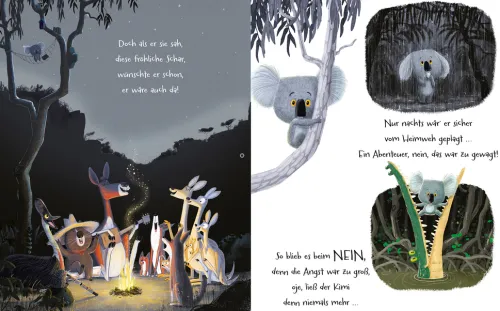 Kimi Koala ist der heimliche König des Dschungels: König Bewegungslos! Denn seinen geliebten Eukalyptusbaum hat er noch nie verlassen, denn hinter jeder Veränderung vermutet er eine Gefahr. Doch dann wird sein gesamtes Leben auf den Kopf gestellt und Kimi erkennt, dass etwas Neues auch durchaus schön sein kann