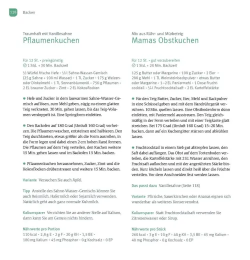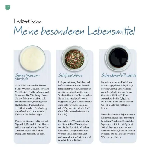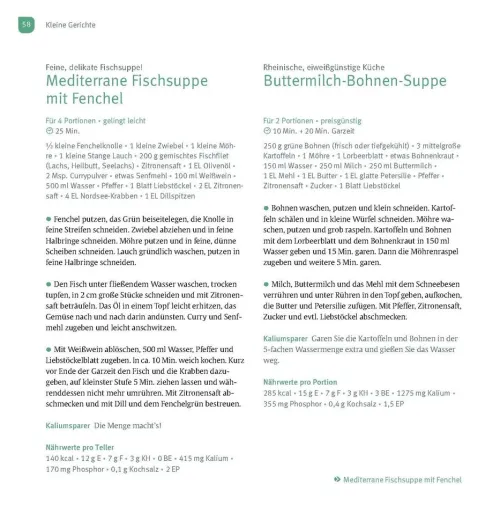 – Die wichtigen Nährwerte: jedes Rezept mit den Nährwertangaben, auf die es bei einer Niereninsuffizienz besonders ankommt.