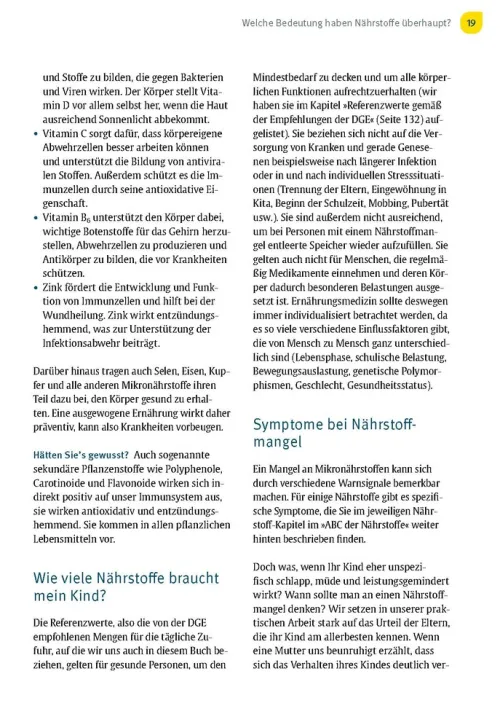 Das Thema Mikronährstoffe ist gerade in aller Munde. Fragen Sie sich manchmal, ob Ihr Kind gut ernährt ist oder ob es zusätzlich Vitaminsaft oder -pillen braucht? Viele Kinder essen schließlich phasenweise am liebsten Nudeln ohne Soße und meiden Grünzeug. Eltern fürchten dann, dass wertvolle Vitamine und Mineralstoffe fehlen, die für die Entwicklung und Gesundheit so wichtig sind. Die Autorinnen, zwei Ärztinnen und eine Ernährungswissenschaftlerin, kennen das Thema auch von ihren eigenen Kindern. Sie zeigen Ihnen, was Kinder brauchen und wie Sie Ihr Kind (fast) ohne Nahrungsergänzungsmittel optimal versorgen.