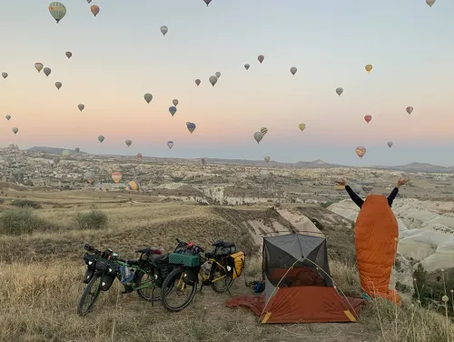 Geht nicht, gibt’s nicht, dachten sich die zwei Österreicherinnen Tanja Willers und Johanna Hochedlinger – und starteten eine Fahrradreise von Kapstadt nach Wien. In 445 Tagen durchquerten sie 21 völlig unterschiedliche Länder in Afrika, der Arabischen Halbinsel und Europa. Auf ihrer 24. 000 Kilometer langen Tour wurden sie angebettelt und ausgelacht, schliefen in ihrem Zelt zwischen Löwen in Botswana und Wölfen in Iran, verkosteten Linsen- und Elefanteneintopf und wären auf der Straße mehr als einmal fast gestorben – vor Angst. Doch egal, wo auf der Welt, gab es diese eine Konstante: Gastfreundschaft. Das Buch basiert auf 36 Originalberichten, die während der Reise entstanden. Es ist Bildband, Abenteuerbericht, zudem ein mit Karten und jeder Menge Tipps versehene Inspirationsquelle, die sich auch den essenziellen Fragen widmet: Was muss auf eine solche Tour mit? Wie wird unterwegs gekocht und gewaschen? Ist das nicht furchtbar gefährlich, vor allem für zwei Frauen? Und wie ist das eigentlich, wenn man als gleichgeschlechtliches Paar durch den Orient fährt? Auszeichnung:Discovery Days 2024 in der Kategorie Bester Vortrag