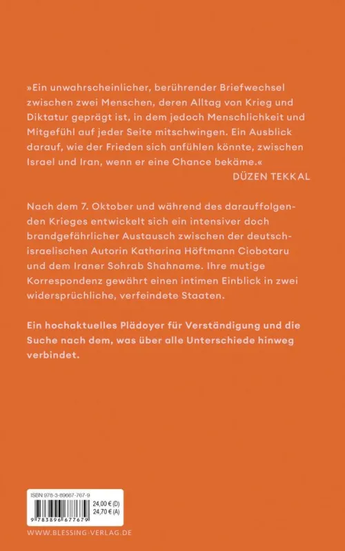 Nach dem Angriff der Hamas am 7. Oktober 2023 wird Sohrab Shahname für die deutsch-israelische Autorin Katharina Höftmann Ciobotaru zum Vertrauten. Und das obwohl der Iran, ein Land, in dem etwa 200. 000 Israelis ihre Wurzeln haben, seit der islamischen Revolution der größte Feind des jüdischen Staates ist. Ihre mutige Korrespondenz ist mal hochpolitisch, mal sehr intim-und immer berührend.