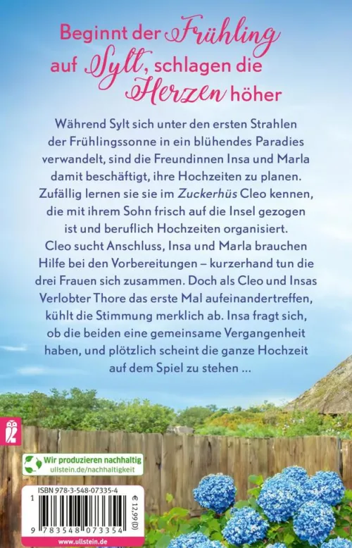 Während Sylt sich unter den ersten Strahlen der Frühlingssonne in ein blühendes Paradies verwandelt, sind die Freundinnen Insa und Marla damit beschäftigt, ihre Hochzeiten zu planen. Zufällig lernen sie sie im Zuckerhüs Cleo kennen, die mit ihrem Sohn frisch auf die Insel gezogen ist und beruflich Hochzeiten organisiert. Cleo sucht Anschluss, Insa und Marla brauchen Hilfe bei den Vorbereitungen – kurzerhand tun die drei Frauen sich zusammen. Doch als Cleo und Insas Verlobter Thore das erste Mal aufeinandertreffen, kühlt die Stimmung merklich ab. Insa fragt sich, ob die beiden eine gemeinsame Vergangenheit haben, und plötzlich scheint die ganze Hochzeit auf dem Spiel zu stehen . . .