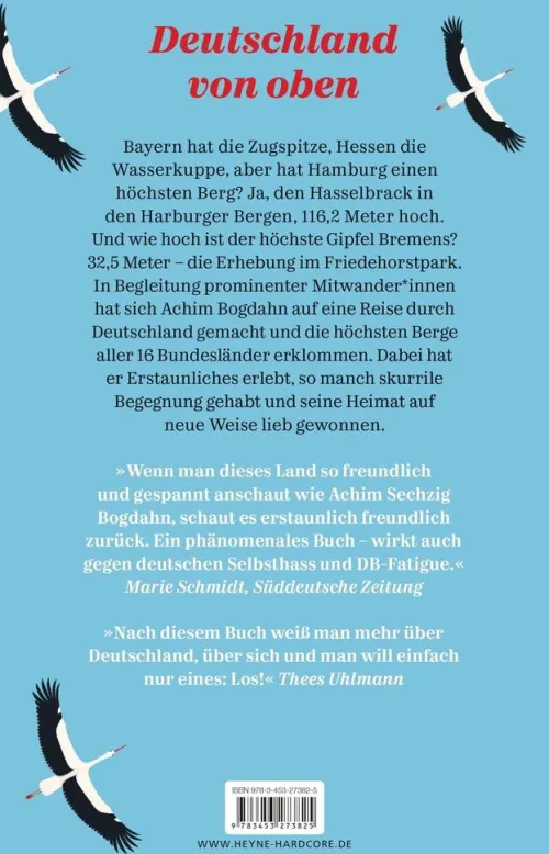 Bayern hat die Zugspitze, Hessen die Wasserkuppe, aber hat Hamburg einen höchsten Berg? Ja, den Hasselbrack in den Harburger Bergen, 116, 2 Meter hoch. Und wie hoch ist der höchste Gipfel Bremens? 32, 5 Meter die Erhebung im Friedehorstpark. Achim Bogdahn hat sich auf eine Reise durch Deutschland gemacht und die höchsten Berge aller 16 Bundesländer erklommen. Damit er nicht alleine wandert, hat er bekannte Menschen aus den jeweiligen Regionen eingeladen, ihn zu begleiten. Aus diesen Wanderungen ist ein Buch entstanden, ein Buch über Deutschland, über Begegnungen und Gespräche, über Menschen und über das Leben mit vielen Umwegen, Anekdoten und Exkursen.