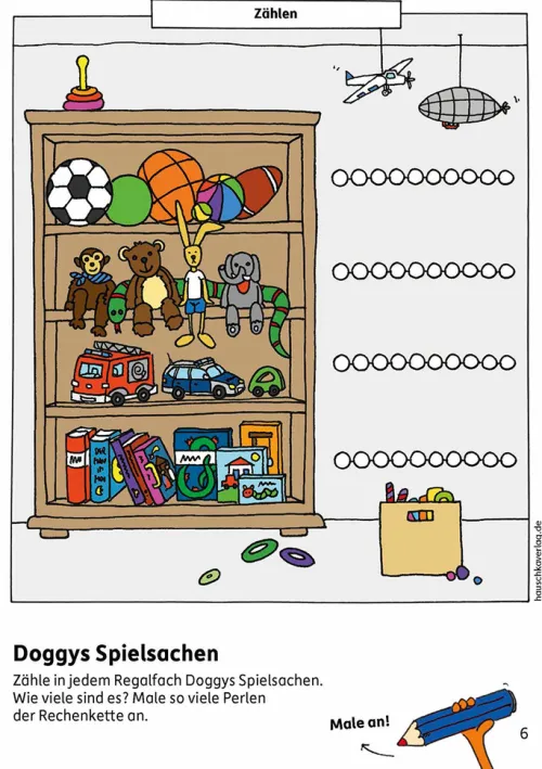 Üben mathematischer Fähigkeiten wie Mengen- und Größenverständnis, Zahlen und Zählen