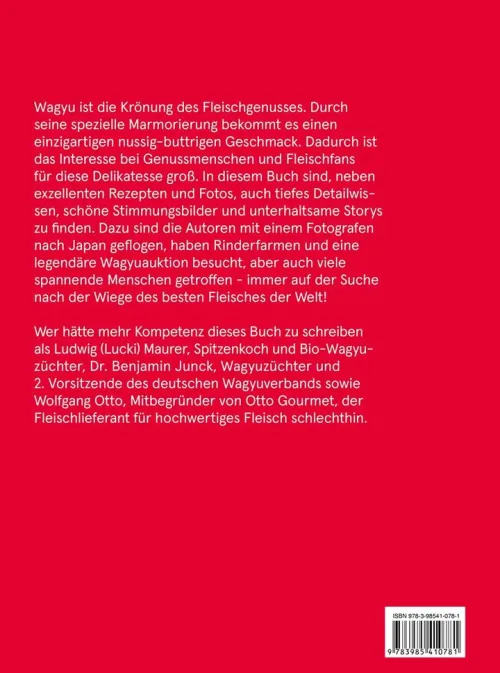 Das ultimative Wagyu-Buch: detailliertes Wissen, stimmungsvolle Storys und über 80 Rezepte von Lucki Maurer, Wolfgang Otto und Benjamin Junck.