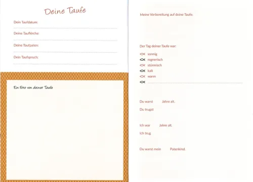 In diesem liebevoll gestalteten Ausfüllalbum können Sie mithilfe inspirierender Fragen die gemeinsame Zeit mit Ihrem Patenkind Revue passieren lassen. Sie können in Erinnerungen an gemeinsame Erlebnisse schwelgen, schöne Momente der Taufe und der Konfirmation festhalten und Wünsche für die Zukunft Ihres Patenkindes zum Ausdruck bringen. Die Fragen dienen Ihnen als Leitfaden, Sie können aber Ihrer Fantasie und Ihren Erinnerungen auf vielen Seiten freien Lauf lassen und das Album zu einem ganz besonderen Geschenk für Ihr Patenkind machen – mit individuellen Texten, Fotos und Erinnerungsschnipseln. Seien Sie dabei offen und lassen Sie Ihr Herz sprechen. Heraus kommt ein ganz persönliches Erinnerungsbuch für Ihr Patenkind, das Sie ihm am Tag der Konfirmation überreichen können.