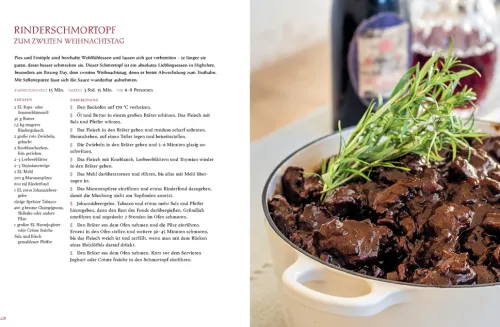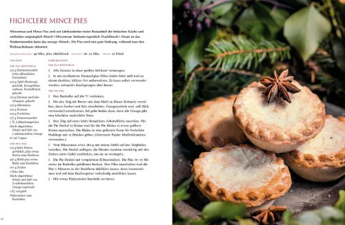 Lady Carnarvon verrät traditionelle Rezepte und gibt Tipps und Inspirationen aus ihrer vorweihnachtlichen Küche. Von gerösteten Maronen, Gingerbread-Lebkuchen, Glühwein und Cocktails über typisch britischen Christmas Pudding oder weihnachtlichen High Tea mit Sandwiches, Scones und Plätzchen bis zum opulenten Weihnachtsbraten mit Cranberry-Sauce und auch ein Rezept für Shepherd s Pie darf natürlich nicht fehlen.
