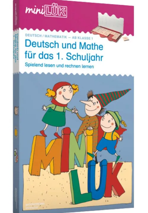 Mit dem miniLÜK-Set „Deutsch und Mathe für das 1. Schuljahr“ trainieren Kinder ab 6 Jahren spielerisch ihre Lese- und Rechenfähigkeiten. Die beiden Übungshefte „Erstlesestation 1“ und „Mathestation“ sind kindgerecht und motivierend gestaltet und fördern gezielt das sinnerfassende Lesen sowie das mathematische Grundverständnis. Ob Silben zusammensetzen, Reimwörter finden oder Zahlenmauern bauen – die abwechslungsreichen Aufgaben bereiten optimal auf die Anforderungen der ersten Klasse vor. Das miniLÜK-Kontrollgerät sorgt dabei für den direkten Lernerfolg: Nach jeder Aufgabe können Kinder selbst prüfen, ob alles richtig ist.