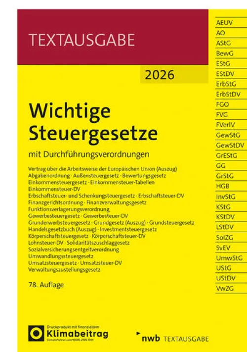 In dieser Ausgabe abgedruckt sind alle bis einschließlich zum 1. Januar 2027 in Kraft tretenden Änderungen, später in Kraft tretende Rechtsänderungen sind in der NWB Datenbank abrufbar.