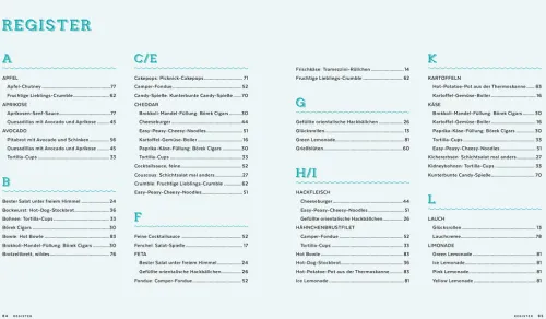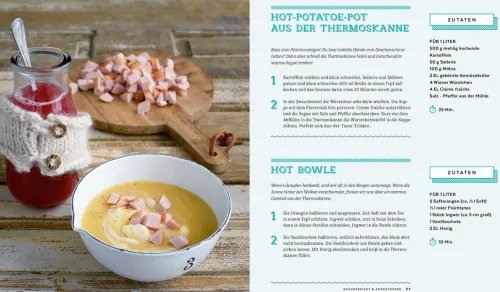 Draußen schmeckt es am besten! Und jeder Outdoor-Ausflug macht ordentlich Hunger und Appetit. Gut, wenn man mit Susanne Klugs „Abenteurerküche“ vorgesorgt hat. Dann werden nämlich italienische Antipasti-Spieße, Melonen-Salat-Sticks, Wraps, gefüllte Brote, Obst und Gemüse, Cake-Pops und süße Schnecken aus dem Rucksack und dem Picknickkorb gezaubert. Egal ob Stockbrot und Fleischspieße, Würstchen und Steaks direkt vom Lagerfeuer auf dem Campingplatz oder Pizza- und Pastawürfel auf dem Waldfest-Buffet: Mit diesem Kochbuch wird jeder Outdoor-Ausflug zum kulinarischen Abenteuer. Die Rezepte kommen ohne Fertigprodukte aus, sind schnell und einfach gemacht und an die Gesundheit wurde auch gedacht. Das ist echte Sonne-, Mond- und Sterne-Küche für die Clique, für Festivalbesuche mit Freunden, für Vater-Sohn-Wochenenden, Fahrradtouren zu zweit und Gartenfeste.