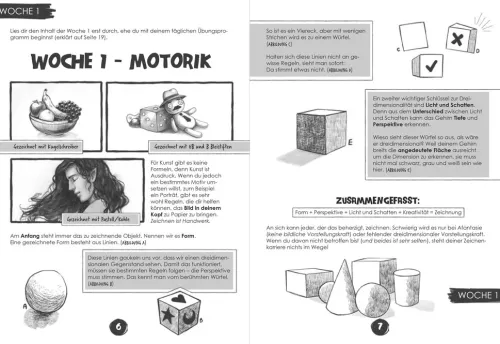 . . . zahlreichen Übungen, direkt zum Zeichnen im Buch.