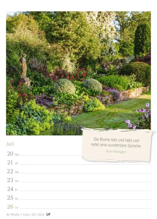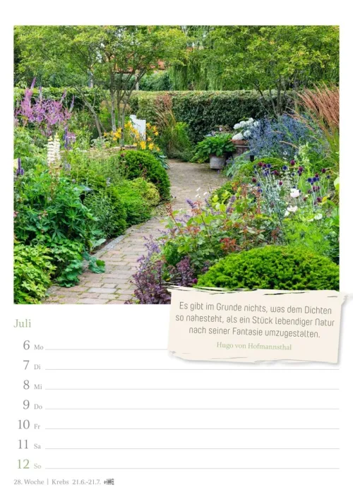 – Die schönsten Impressionen aus dem Garten: Kalender 2026 im Hochformat 16, 5 x 23 cm mit Zitaten und Platz für Eintragungen- Pflanzen- und Blumen-Pracht passend für jede Wand: Fotokalender 2026, der für Entspannung sorgt- Woche für Woche schöne Garten-Fotos genießen: Wandplaner mit stimmungsvollen Motiven aus Nutzgärten und Ziergärten- Das ideale Geschenk für Gartenfreund:innen: Naturkalender mit 53 Bildern schöner Gärten- Für Hobby-Gärtner:innen und alle, die die Natur lieben: Foto-Wandkalender von Harenberg im Athesia Kalenderverlag